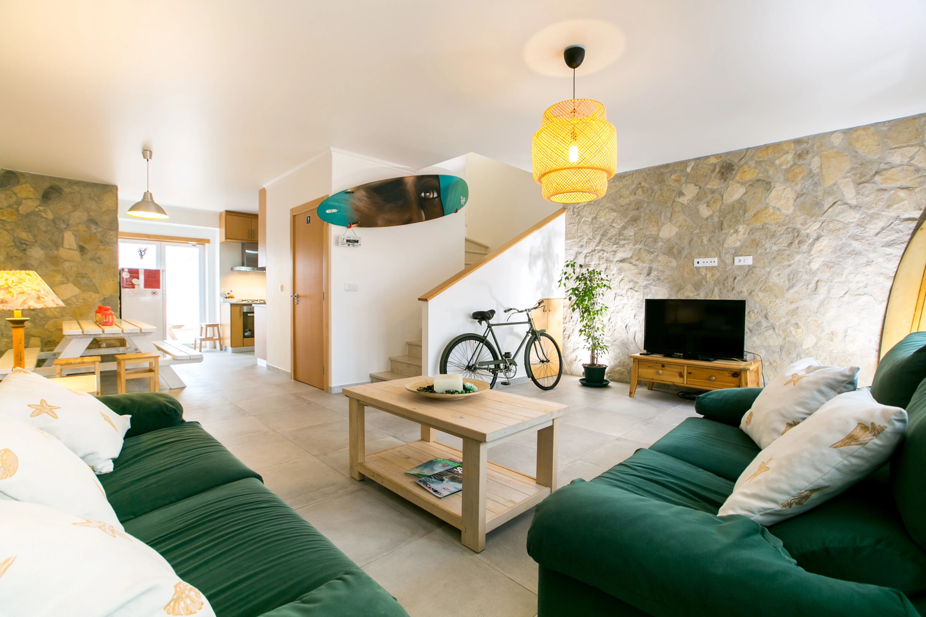 This year, we will be staying in two cozy, lovingly decorated surf houses located right next to each other, with an in-house chef preparing healthy meals. Altogether, there are 9 rooms, all with private bathrooms. The houses are close to the surf spots, far from any noise, and simply incredibly charming.